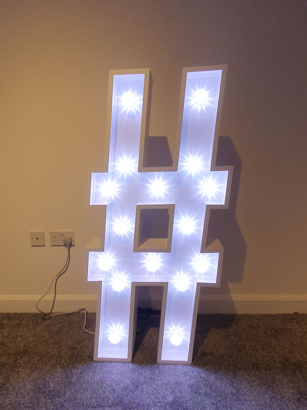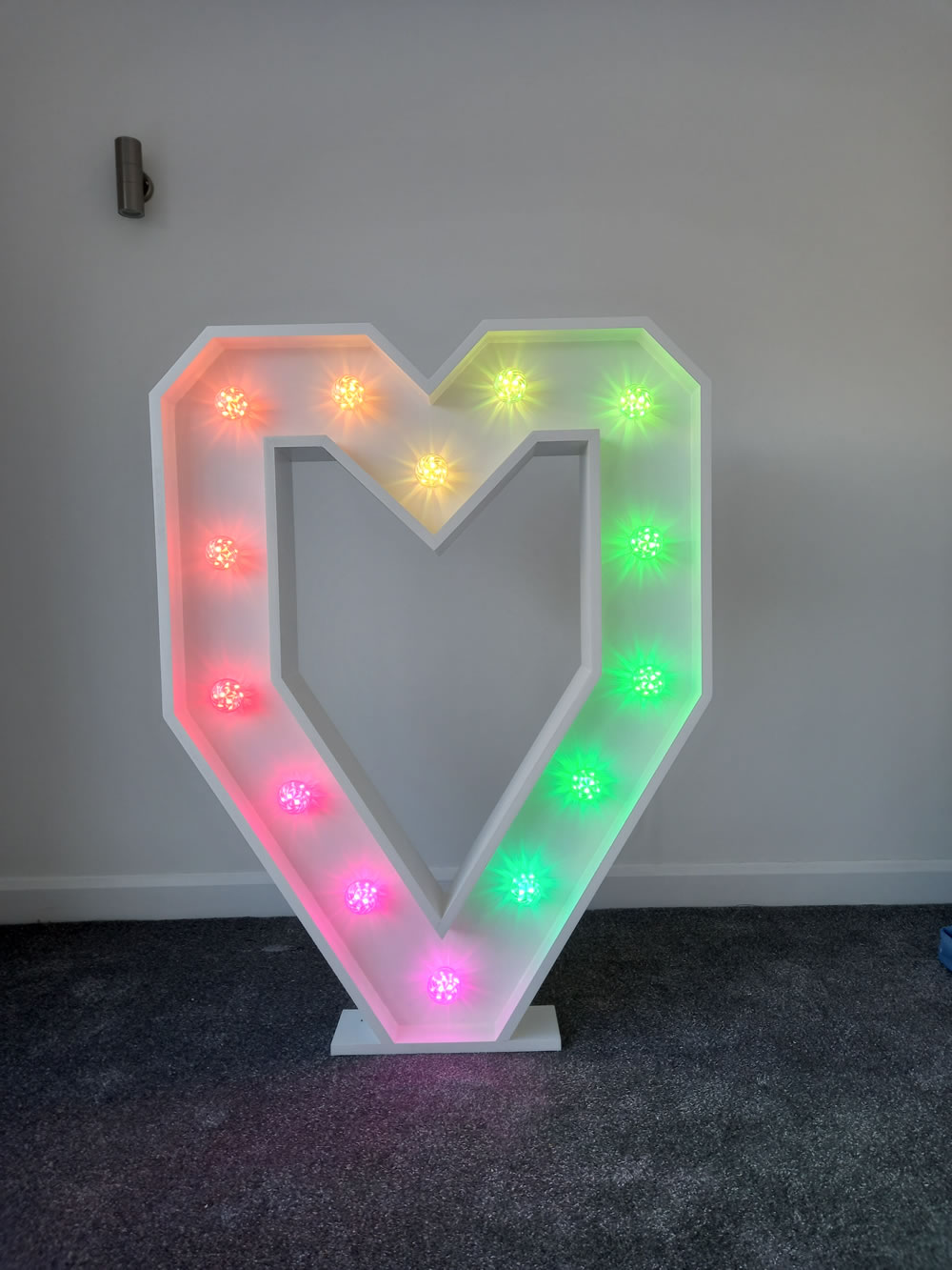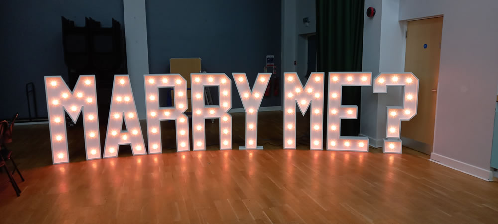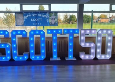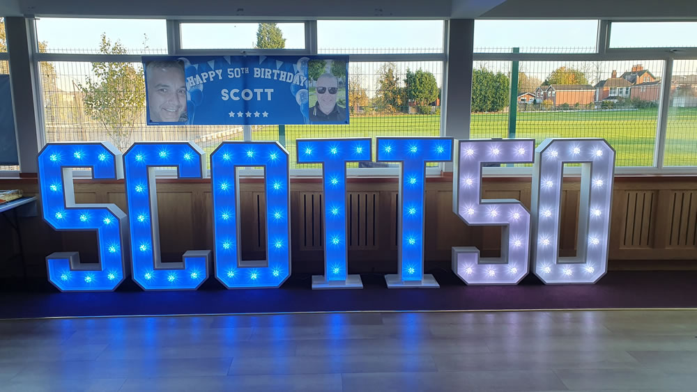 As with our light up numbers, our light up letters are 4ft tall by approx 2ft wide.